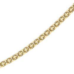 Features interlocking links that create a flat and wide chain, known for its durability and intricate design.