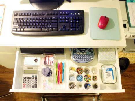 We’re all familiar with the concept of “yes, no, and maybe” piles. Go through your clutter and decide what you need to keep, throw away, and what you’re not sure of. Organize everything in your “keep” pile on your desk in a way that makes sense for you. Again, everything should have a dedicated place that supports your daily function. Obviously toss what you have put in the “throw away” pile. For me, magazines tend to pile up until I finally throw a stack in the recycling. For the items you’re not sure if you still need, here’s a handy test: put the items aside for a week and if you haven’t used them, toss them. Simple as that. We often hold onto things “just in case,” but more often than not, these things just become annoying clutter.