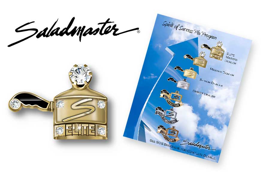 Working with its distributor, Imperial Marketing, Dion provided Saladmaster guidance on designing the pins that accompanied this important program. After a quick back and forth on the artwork, a final set of designs were chosen. The revamped Spirit of Success Pin Program includes career path award levels from Consultant to Elite Master Dealer. The basis of the new pin designs is the well known “Pan Pin” that was previously awarded only at Dealer level. To engage people just starting out to shoot for a Dealer promotion, Saladmaster redesigned all of their pins to resemble the Pan Pin – enabling them to visually see their progress all the way up to Elite Master Dealer.